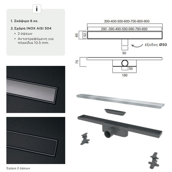 ● Γραμμικό κανάλι - σχάρα μπάνιου σε inox AISI 304