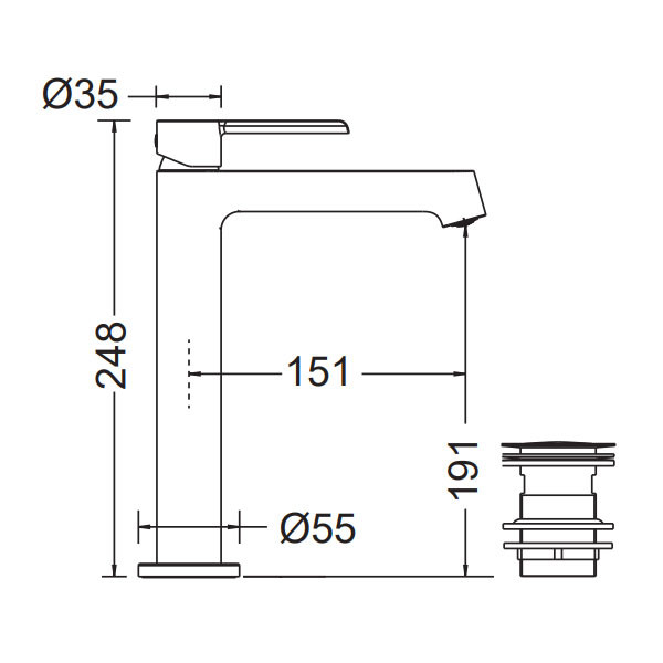 • Μπαταρία νιπτήρος ψηλή σε χρώμιο