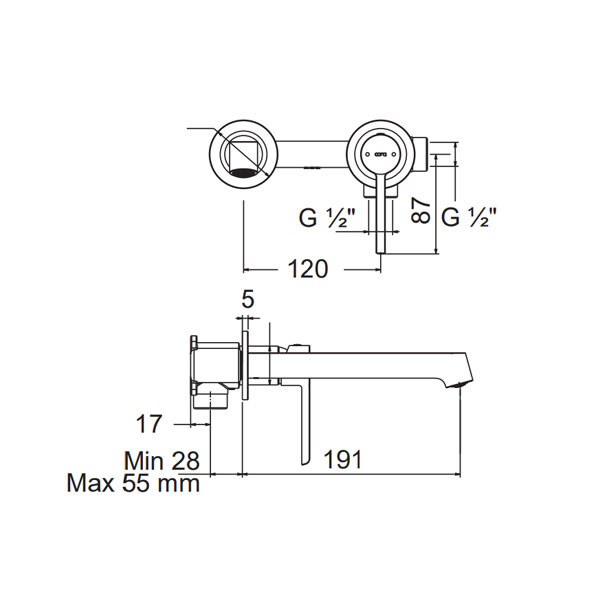 • Μπαταρία εντοιχισμού νιπτήρος σε χρώμιο