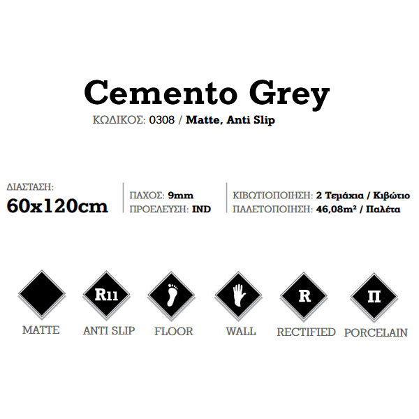 • Πλακάκι εξωτερικού δαπέδου πορσελανάτο, με matte και αντιολισθητική επιφάνεια, rectificado
