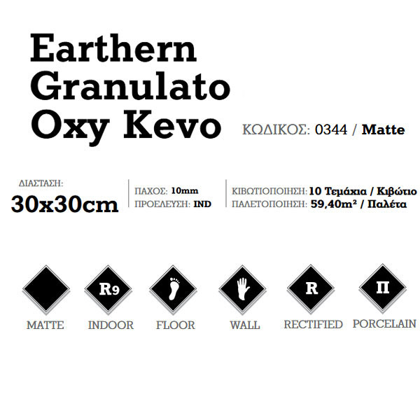 • Πλακάκι εσωτερικού δαπέδου πορσελανάτο, με matte επιφάνεια, rectificado