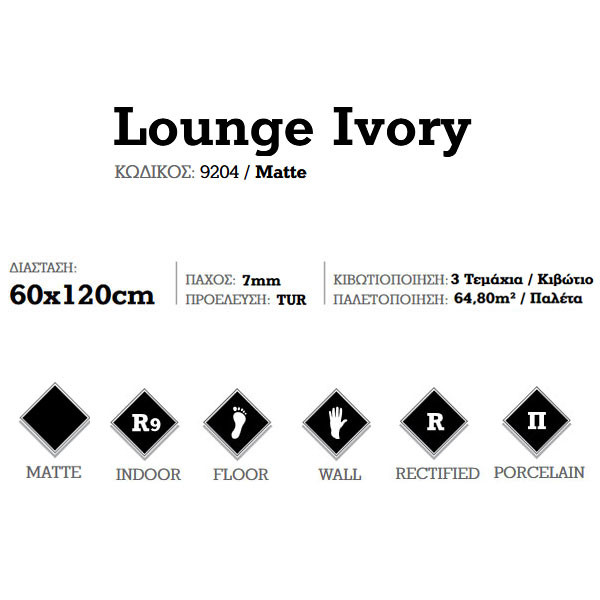 • Πλακάκι εσωτερικού δαπέδου πορσελανάτο, με matte επιφάνεια, rectificado