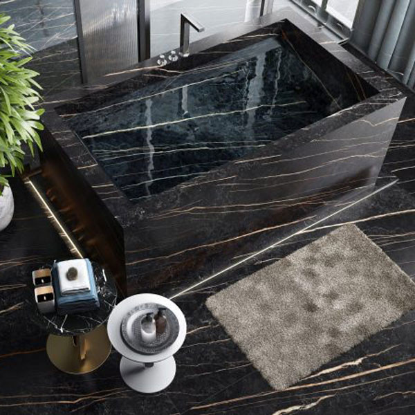 Πλάκάκι μπάνιου μεγάλων διαστάσεων, πορσελανάτο με όψη μαρμάρου, σε Noir Polished