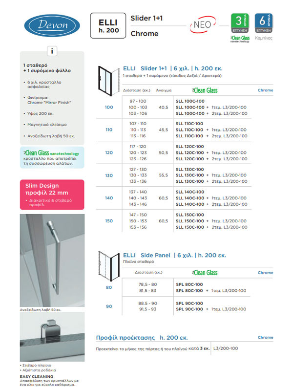 • Η καμπίνα Slider (1+1) SLL - Side Panel SPL προσφέρεται και σε άλλες διαστάσεις με επιλογή