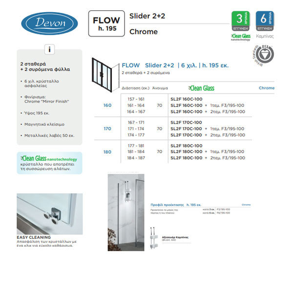 • Η καμπίνα Flow Slider (2+2) SL2F προσφέρεται και σε άλλες διαστάσεις με επιλογή
