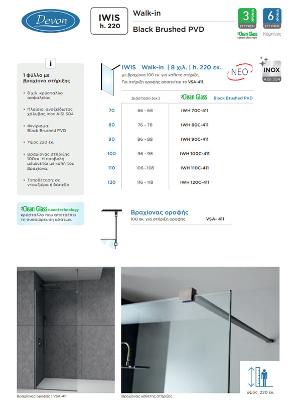 • Το παραβάν Iwis Walk - In προσφέρεται σε διαστάσεις από 66 έως 118 cm με επιλογή