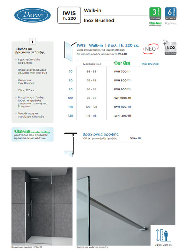 • Το παραβάν Iwis Walk - In προσφέρεται σε διαστάσεις από 66 έως 118 cm με επιλογή