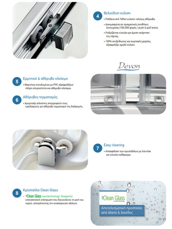 • Τo κρύσταλλo είναι με επίστρωση Clean Glass Nanotechnology που διευκολύνει τη ροή του νερού, αποτρέποντας την συσσώρευση αλάτων