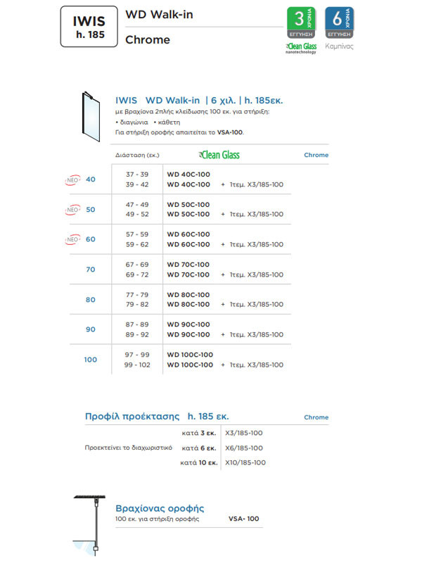 • Το παραβάν Iwis Walk-In προσφέρεται σε διαστάσεις από 37 έως 109 cm με επιλογή
