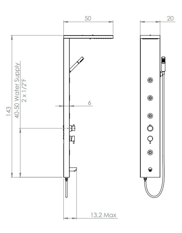 • Στήλη ντους / υδρομασάζ θερμομικτική από ανοξείδωτο χάλυβα