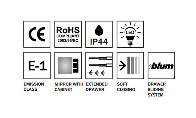 • Βάση κρεμαστή: από μελαμίνη Smoked Oak, με δύο συρτάρια
