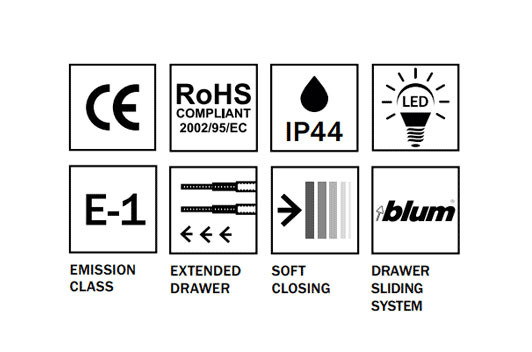 • Βάση δαπέδου: από μελαμίνη Natural Oak. Δύο αποθηκευτικοί χώροι. Δύο πόρτες και ένα συρτάρι