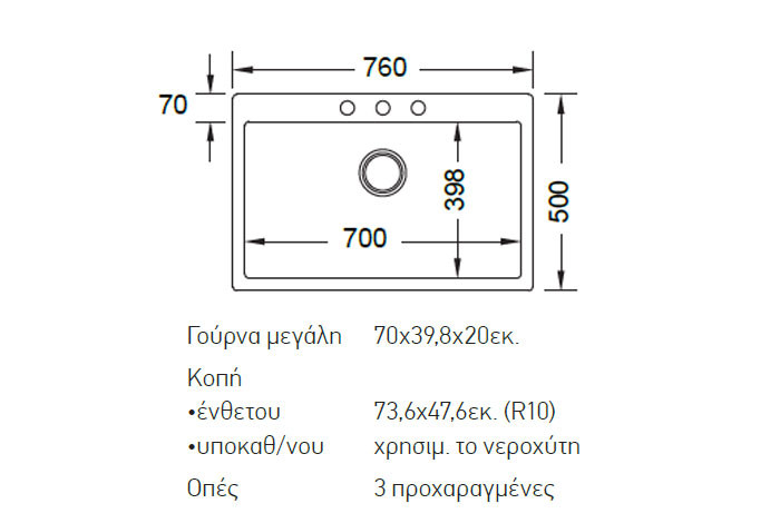 • Ένθετος συνθετικός νεροχύτης με αντιβακτηριακή επιφάνεια με υψηλή αντοχή σε χτυπήματα,υψηλές θερμοκρασίες και σε θερμικό σοκ