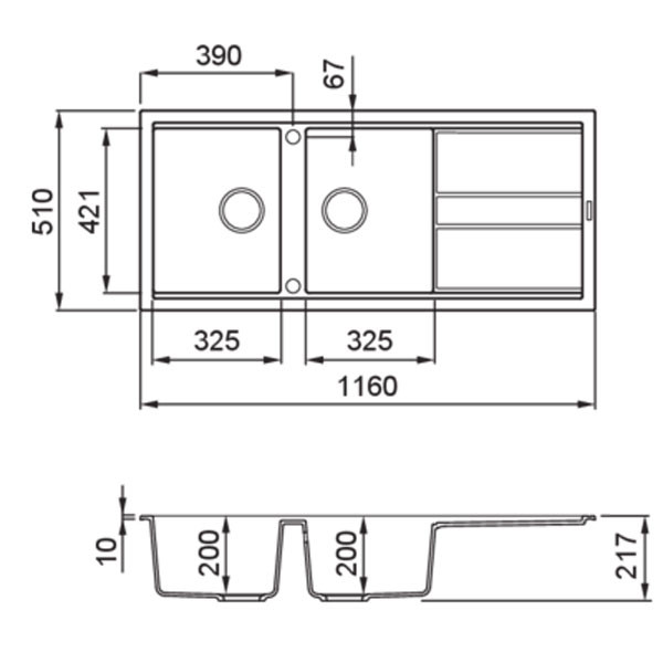 • Ένθετος νεροχύτης γρανίτης με ολική αντιβακτηριακή προστασία