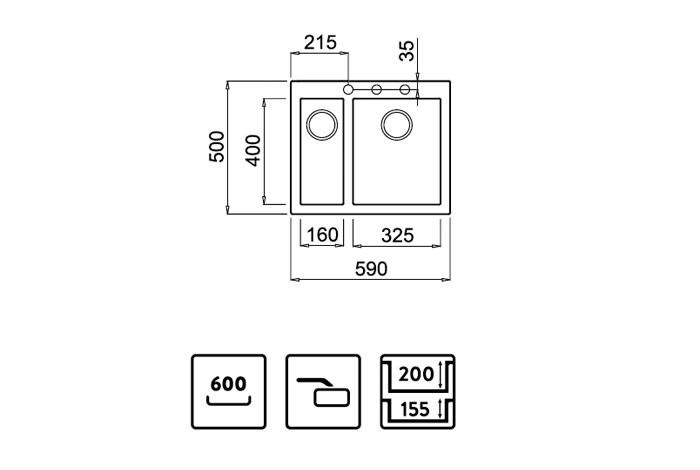 • Κοπή πάγκου: 57 x 48 cm