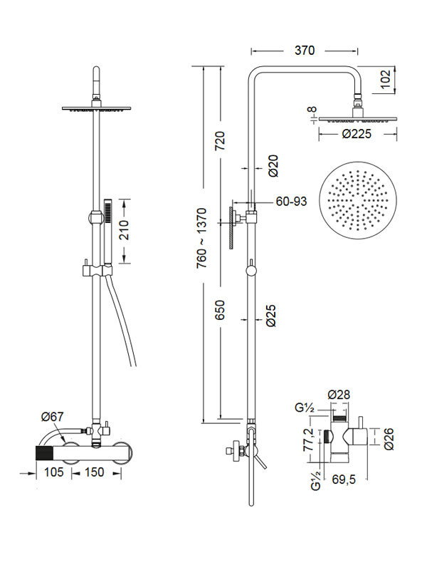 • Ανακλινόμενο ντους οροφής Ø 22,5 cm