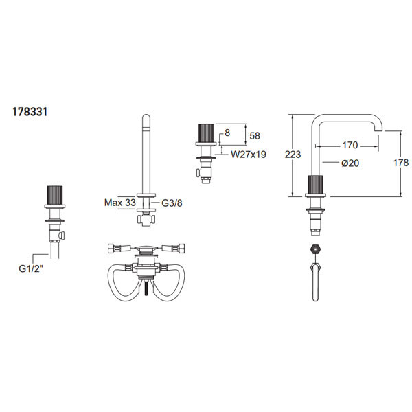 Eurorama Oso 178331-410 Black Brushed Νιπτήρος Τριών Οπών