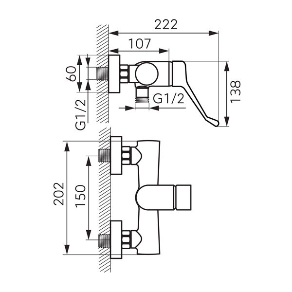 • G1/2 έκκεντρο διάστημα σύνδεσης 150 ± 20 mm
