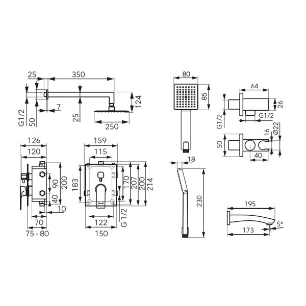 • Εντοιχιζόμενη μπαταρία ντους, κομπλέ με μονό μίκτη