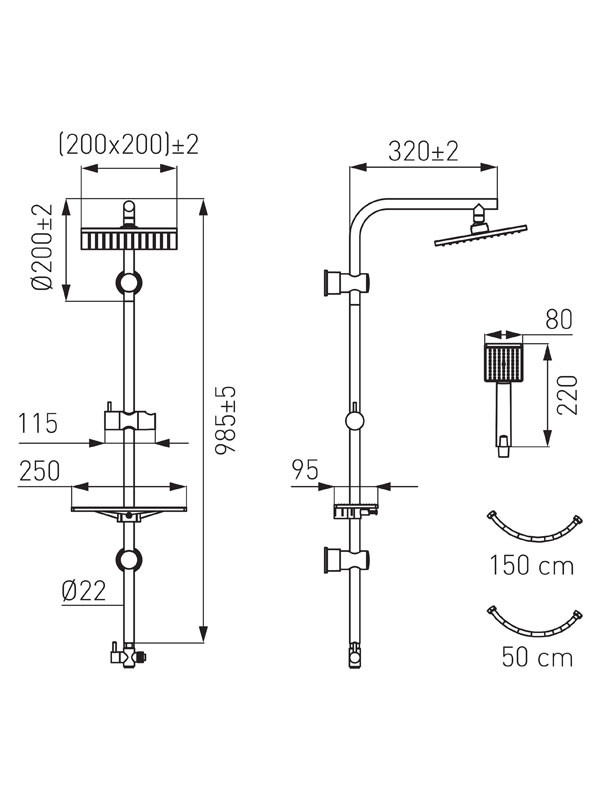 • Μεταλλική ράβδος ολίσθησης 985 mm