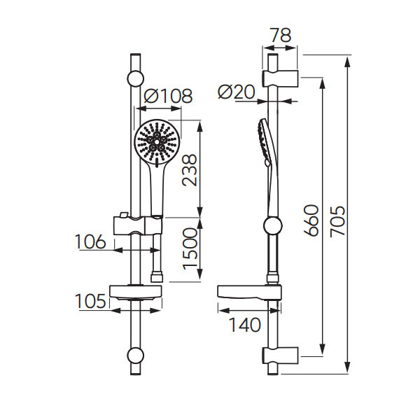 • Μεταλλική ράβδος ολίσθησης 705 mm