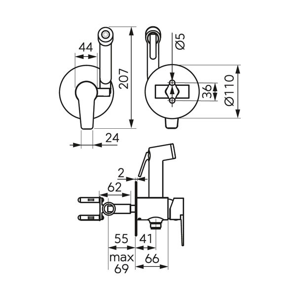 • Εντοιχιζόμενος μίκτης ζεστού - κρύου 1 οπής, για πλύση υγιεινής ή καθαρισμό λεκάνης σε μαύρο