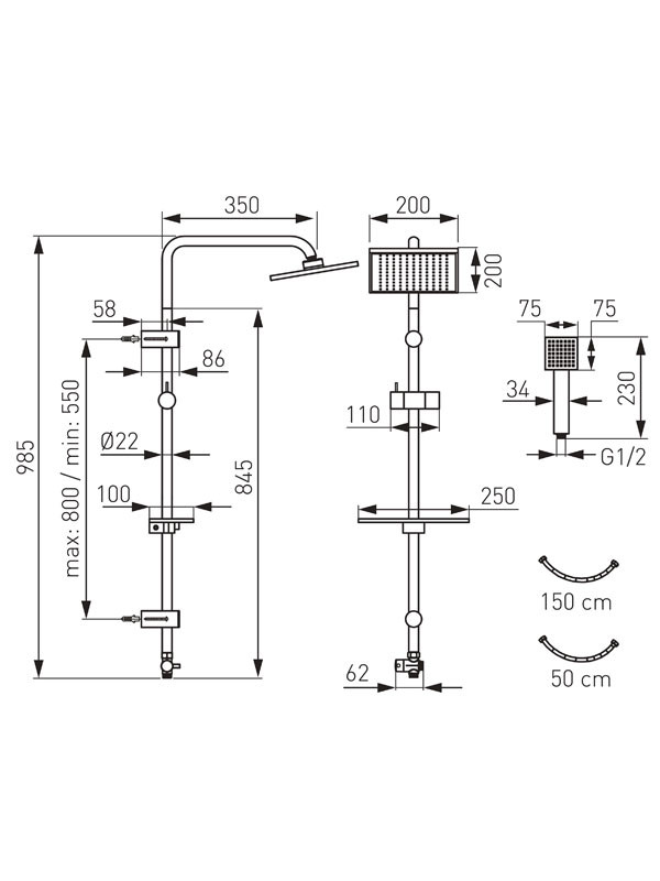 • Κώδωνας ντους διαστάσεων – 200 x 200 mm