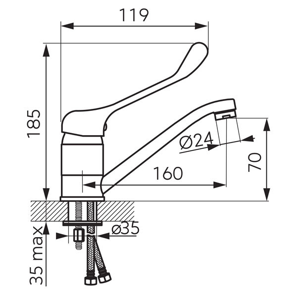 • Μπαταρία νιπτήρος αναμεικτική για Α.Μ.Ε.Α ή χειρουργείου σε χρωμέ, με περιστρεφόμενο στόμιο