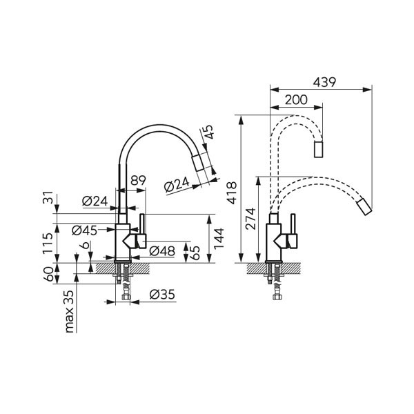 • Ύψος στόμιου από 274 mm έως 418 mm