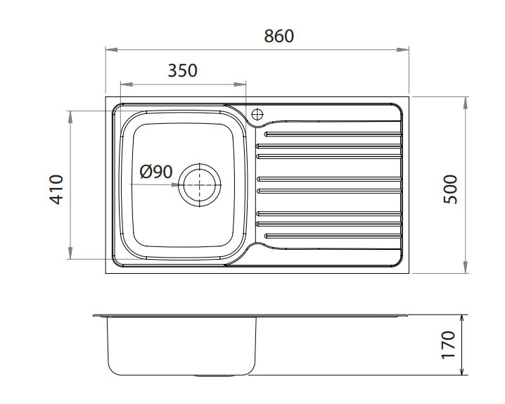 • Ένθετος ανοξείδωτος νεροχύτης αντιστρεφόμενος 18 / 10 αθόρυβος, με λεία επιφάνεια