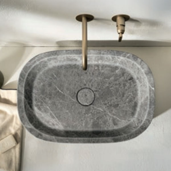 • Νιπτήρας επικαθήμενος από φυσικό πέτρωμα (μάρμαρο) σε απόχρωση λευκό / γκρι