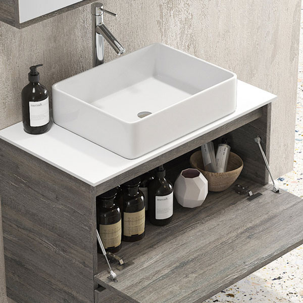 • Το έπιπλο μπάνιου διατίθεται σε ποικιλία χρωμάτων ανάγλυφης συνθετικής μελαμίνης με επιλογή