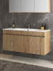 • Πάγκος κρεμαστός με δύο πορτάκια και ένα βαγονέτο στη μέση (με αργό κλείσιμο), από μελαμίνη σε ανάγλυφο συνθετικό δρυς