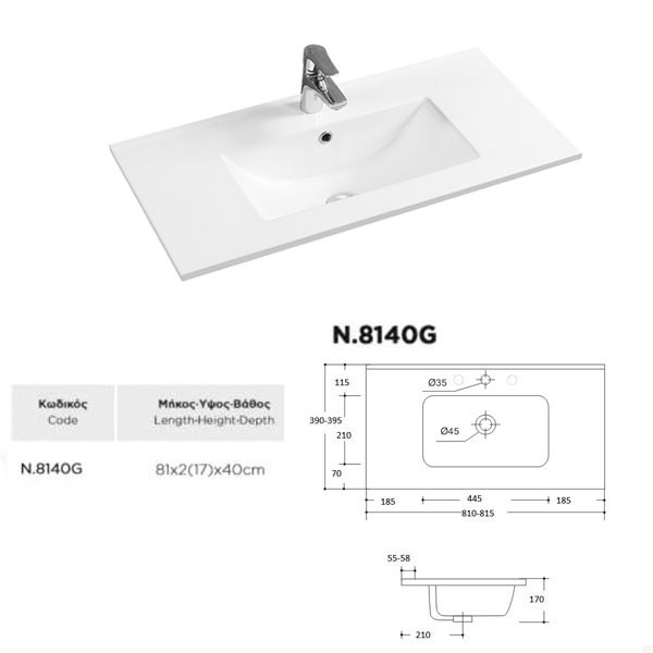 • Στην τιμή δεν συμπεριλαμβάνονται το φωτιστικό και η μπαταρία νιπτήρος