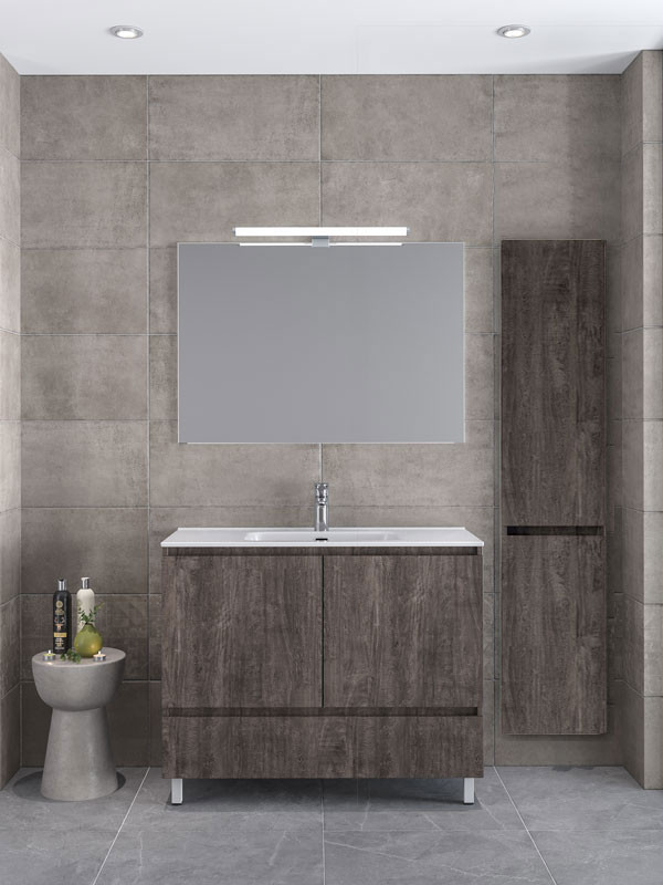 • Στήλη μπάνιου με δύο ντουλάπια, δύο πορτάκια (με αργό κλείσιμο) και τρία ράφια, σε γκρι μελαμίνη με επιλογή