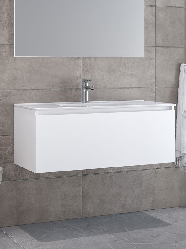 • Πάγκος κρεμαστός με ένα ντουλάπι, με ένα πορτάκι με ανάκλιση (με αργό κλείσιμο), σε λευκή μελαμίνη