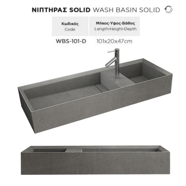 • Νιπτήρας επιτοίχιος Solid χρώματος Grey, με ανθεκτική επιφάνεια στην αντίξοη χρήση (χτυπήματα, σκληρά απορρυπαντικά)