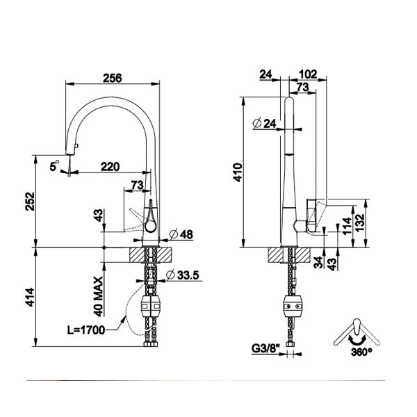• Μπαταρία νεροχύτου ψηλή, τύπου "Καμπύλη" σε inox finish