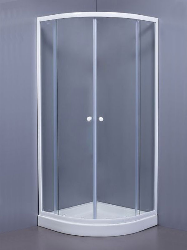 • Καμπίνα ημικυκλικής ντουζιέρας με κρύσταλλα ασφαλείας διάφανα πάχους 5mm, με δύο σταθερά φύλλα και δύο συρόμενες πόρτες, προφίλ αλουμινίου λευκά, μαγνητικό κλείσιμο