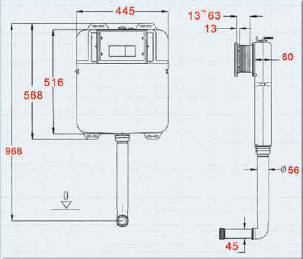 • Εντοιχιζόμενο καζανάκι με μηχανισμό εξοικονόμησης νερού 3/6 Lt και αθόρυβο φλοτέρ