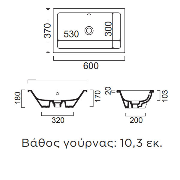 • Bάθος γούρνας: 10,3 cm