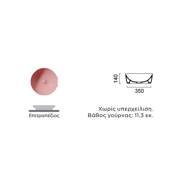 • Νιπτήρας επικαθήμενος πάγκου χρώματος blush