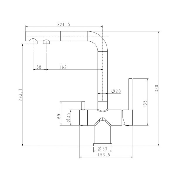 • Βολική μπαταρία για 3 λειτουργίες σε 1, με πόμολο κρύου και ζεστού νερού στα δεξιά και πόμολο φιλτραρισμένου νερού στα αριστερά