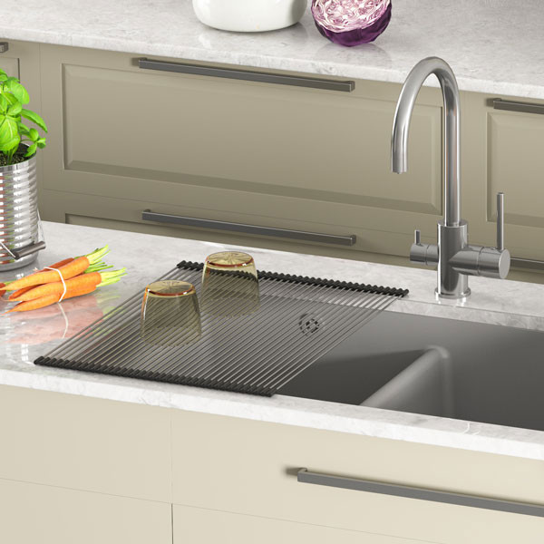 • Επιφάνεια αποστράγγισης νεροχύτη από ανοξείδωτο ατσάλι