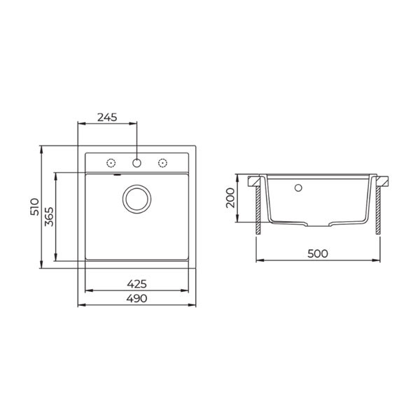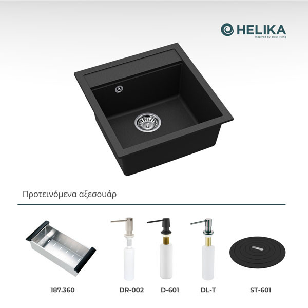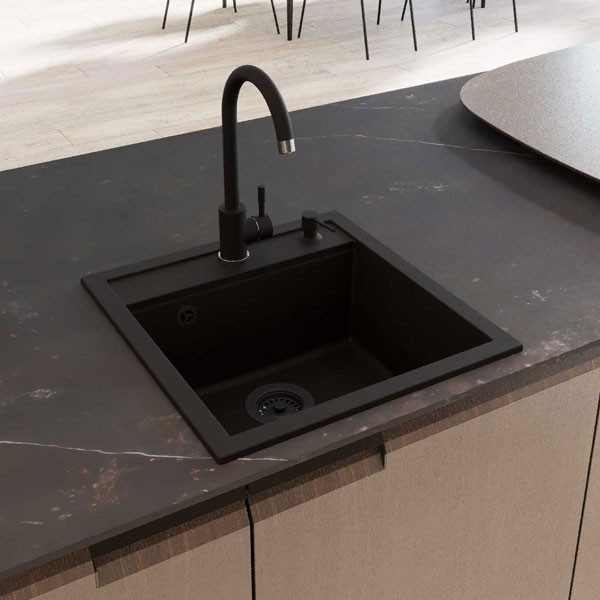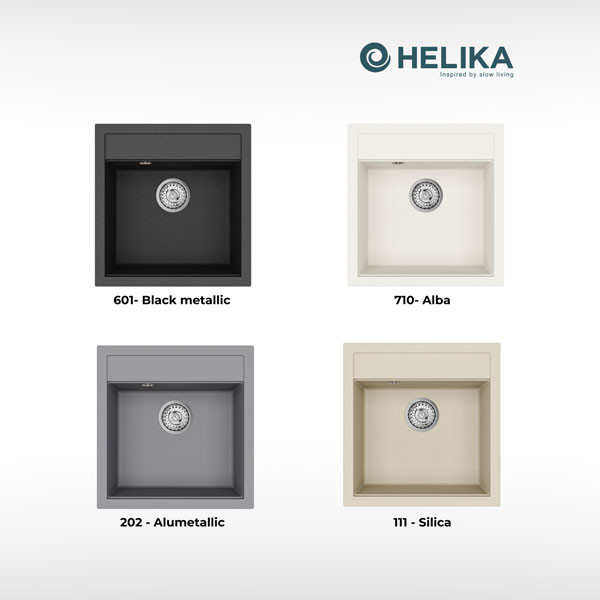 • Ένθετος νεροχύτης γρανίτης από 80% φυσικούς κρυστάλλους, χαλαζία, ειδικές ρητίνες και χρωστικές, σε χρώμα 601-Black Metallic