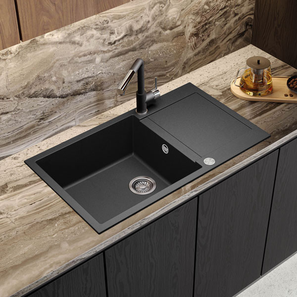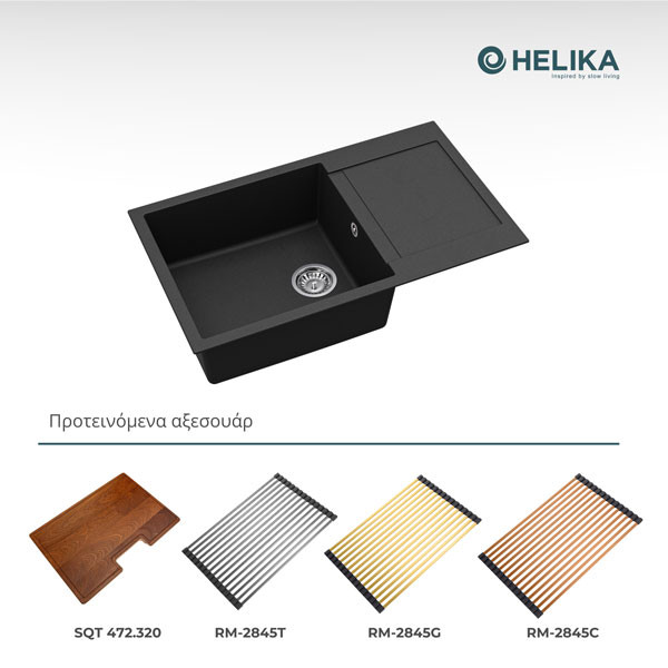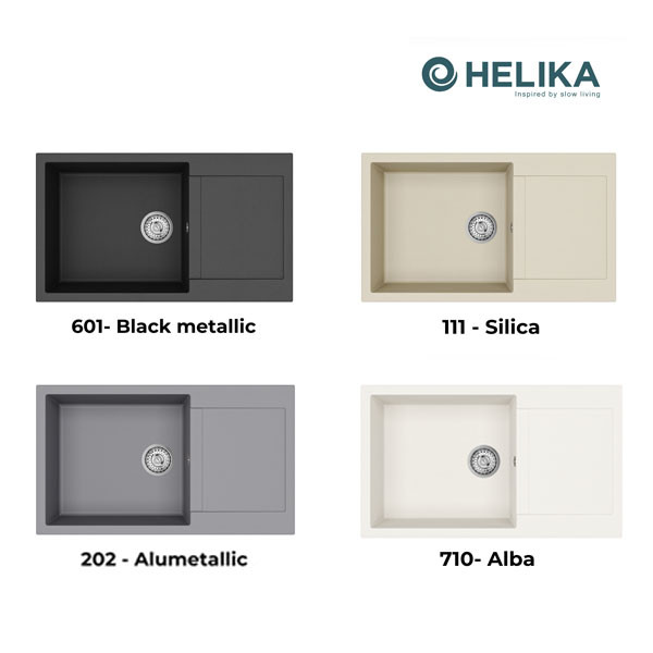 • Ένθετος νεροχύτης γρανίτης από 80% φυσικούς κρυστάλλους, χαλαζία, ειδικές ρητίνες και χρωστικές, σε χρώμα 111-Silica