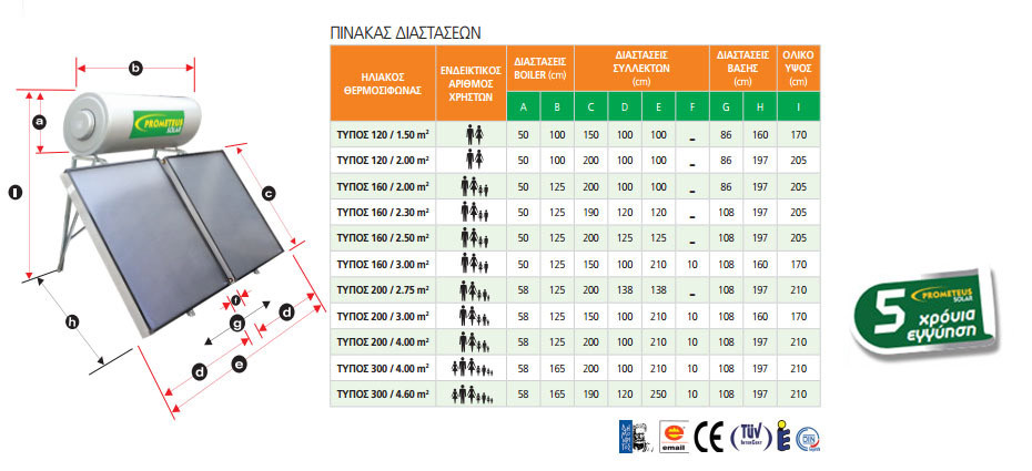 • Διάσταση Θερμοδοχείου: Ø 50 x 125 cm