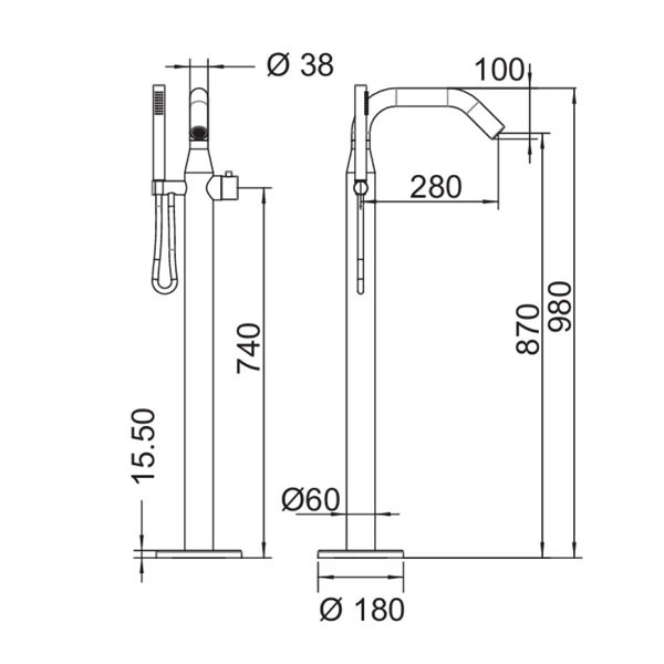 • Βάση - Ακροφύσιο: 87 cm