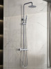 • Ρυθμιζόμενη τηλεσκοπική ορειχάλκινη βέργα ντους 2 εκροών, ύψους 88 cm έως 124 cm από την στάθμη της μπαταρίας, σε χρώμιο