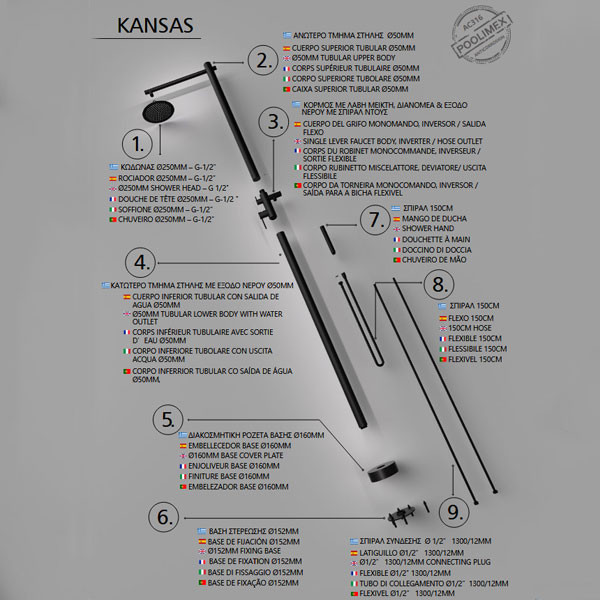 Imex Kansas GPK012/ANG Inox Black Matt Στήλη Ντους Εξωτερικού Χώρου